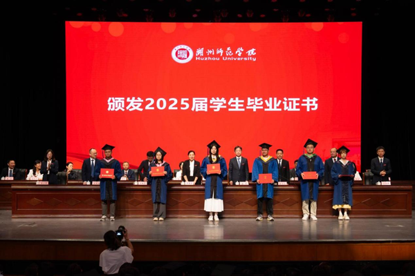 舒志定宣读2025届毕业生和省优秀毕业生名单,校党政领导班子为毕业生代表颁发毕业证书。